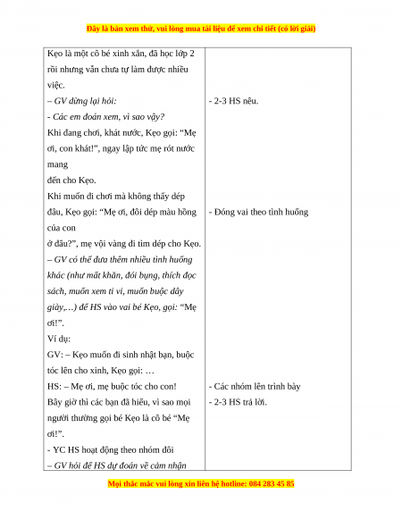 giày,…) để HS vào vai bé Kẹo, gọi: “Mẹ ơi!”. Ví dụ: