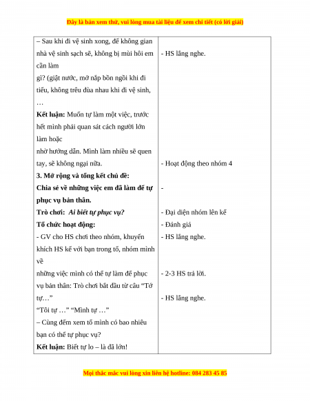 - Dẫn dắt vào chủ đề tự phục vụ bản thân.