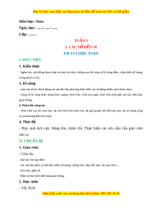 Ngày dạy: ....../ ....../ ...... L p: ớ ......... TUẦN 5 1. CÁC S Đ Ố ẾN 10 EM VUI H C Ọ TOÁN I. M C Ụ TIÊU 1. Ki n t ế h c ứ