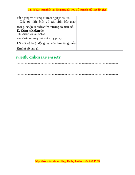 Đây là bản xem th , vu ử i lòng mua tài li u ệ đ xe ể m chi ti t (c ế ó l i ờ gi i ả ) c t ắ ngang và đư ng ờ c m ấ đi ngư c ợ chi u. ề - Chia sẻ hi u ể bi t ế về các bi n ế báo giao thông. Nh n ậ ra bi n ế c m ấ thư ng ờ có màu đ . ỏ D. Củng c , ố d n dò ặ