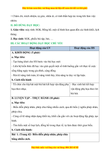 - Rèn kĩ năng tính toán, kĩ năng trình bày, khả năng tư duy và lập luận. b. Cách tiến hành