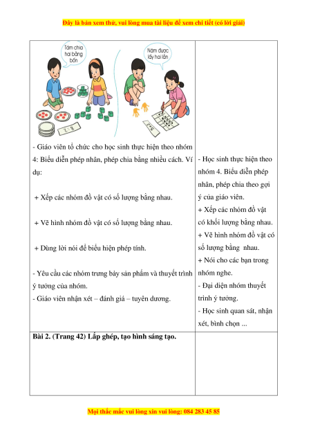 - Giáo viên tổ chức cho học sinh thực hiện theo nhóm