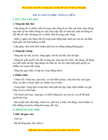 Đây là bản xem th , vu ử i lòng mua tài li u ệ đ xe ể m chi ti t (c ế ó l i ờ gi i ả ) BÀI 25: EM VUI H C Ọ TOÁN (2 TI T Ế )