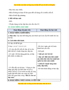 hú, kích thích sự tò mò c a H ủ S trư c khi ớ vào bài h c. ọ b. Cách th c t ứ i n hành: ế GV đ c ọ số đ H ể S ghi. Ví d : ụ 1, 4, 6, 7, 2, 8, 3, 5, 0