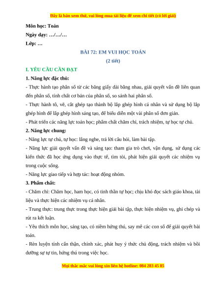 - Phát triển các năng lực toán học; phẩm chất chăm chỉ, trách nhiệm, tự học tự chủ. 2. Năng lực chung: