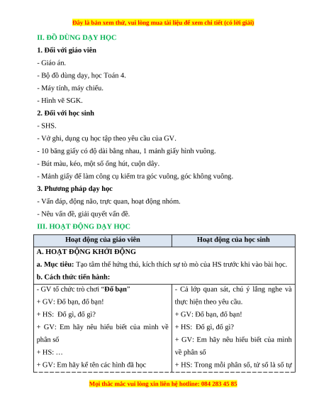 - Bộ đồ dùng dạy, học Toán 4. - Máy tính, máy chiếu. - Hình vẽ SGK.