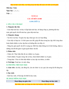 Ngày dạy: …/…/… Lớp: …. TUẦN 22 CÁC SỐ ĐẾN 10 000 GAM (TIẾT 2)