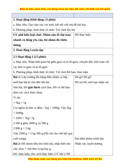 a. Mục tiêu: Nhận biết quan hệ giữa gam và ki-lô-gam, chuyển đổi, tính toán với