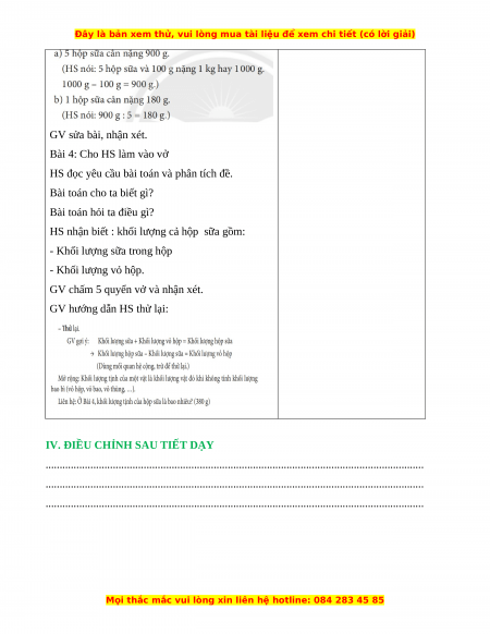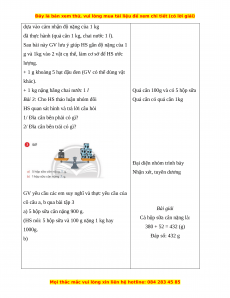 (HS nói: 5 hộp sữa và 100 g nặng 1 kg hay 380 + 52 = 432 (g) 1000g. Đáp số: 432 g b)