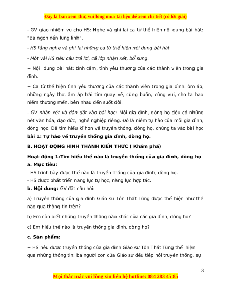 Lựa chọn, đề xuất được cách giữ gìn và phát huy truyền thống của gia đình, dòng họ trong học tập và lao động. 3. Phẩm chất: