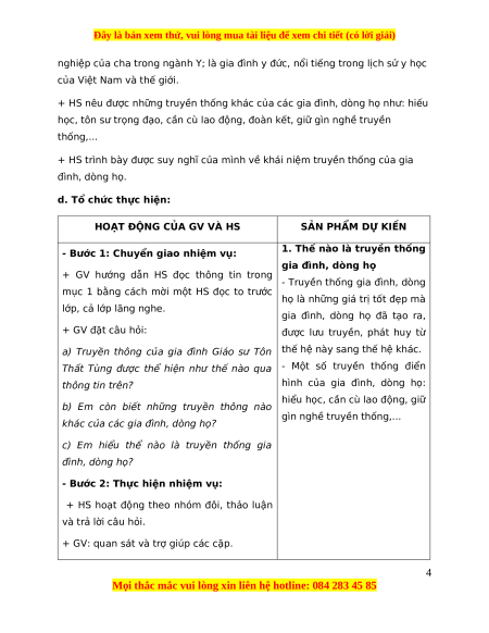 + HS trình bày được suy nghĩ của mình về khái niệm truyền thống của gia đình, dòng họ.