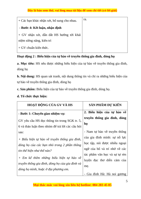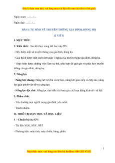 BÀI 1: TỰ HÀO VỀ TRUYỀN THỐNG GIA ĐÌNH, DÒNG HỌ (2 TIẾT) I. MỤC TIÊU: