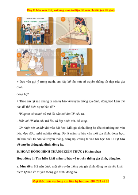 niệm tự hào về truyền thống gia đình, dòng họ. 3