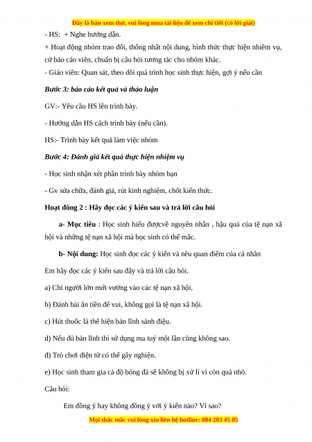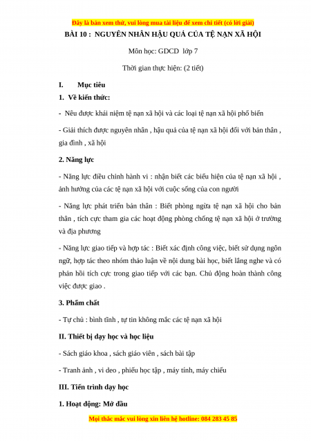 Giáo án GDCD 7 Bài 10 (Chân trời sáng tạo): Nguyên nhân hậu quả của tệ nạn xã hội