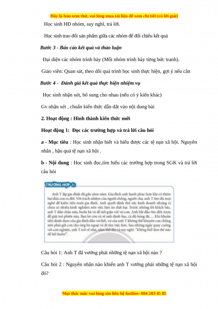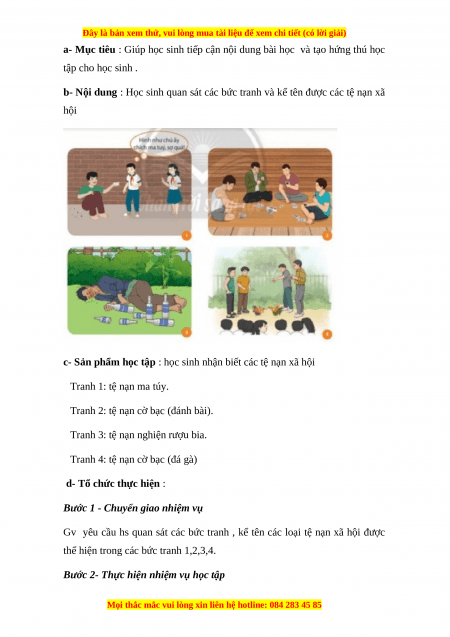 b- Nội dung : Học sinh quan sát các bức tranh và kể tên được các tệ nạn xã hội