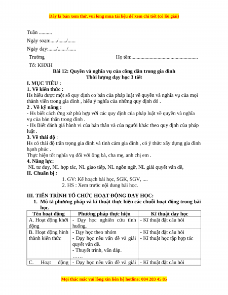 Bài 12: Quyền và nghĩa vụ của công dân trong gia đình