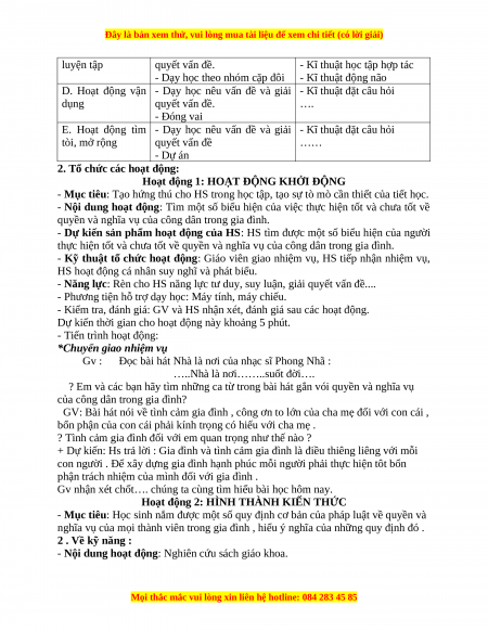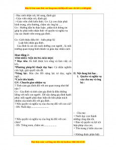 - Mục tiêu: Học sinh nắm được một số quy định cơ bản của pháp luật về quyền và