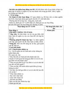 1. Mô tả phương pháp và kĩ thuật thực hiện các chuỗi hoạt động trong bài học. Tên hoạt động