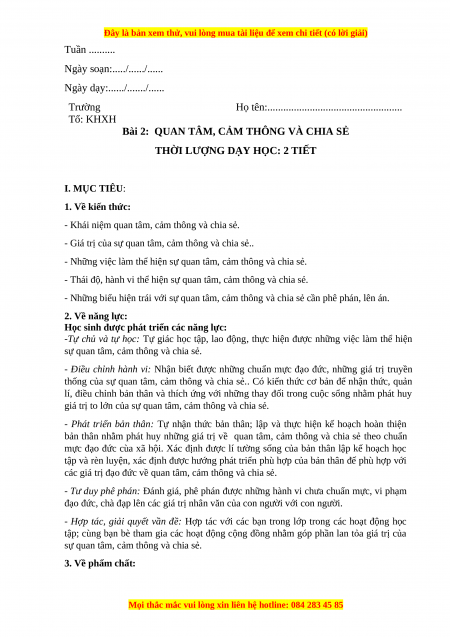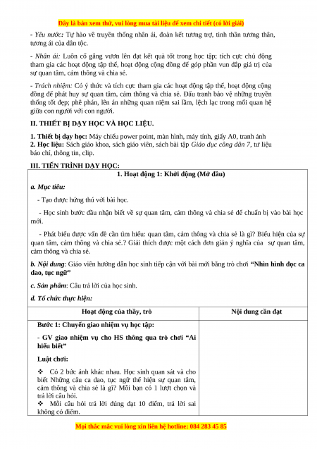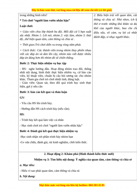- Nêu được khái niệm quan tâm, cảm thông và chia sẻ b. Nội dung: