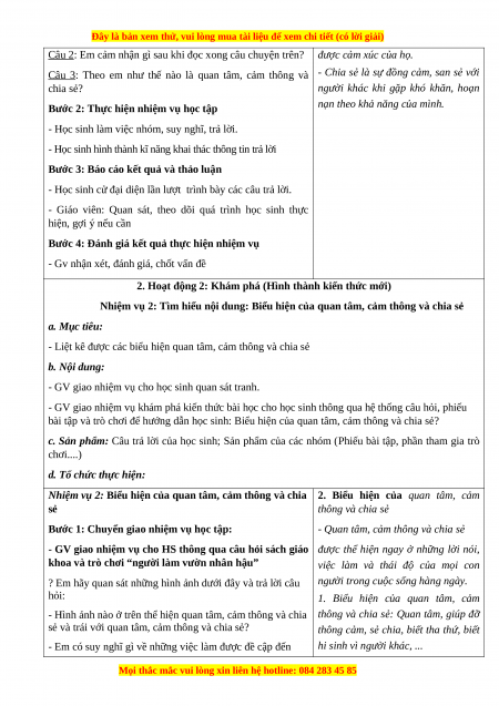 - Liệt kê được các biểu hiện quan tâm, cảm thông và chia sẻ b. Nội dung: