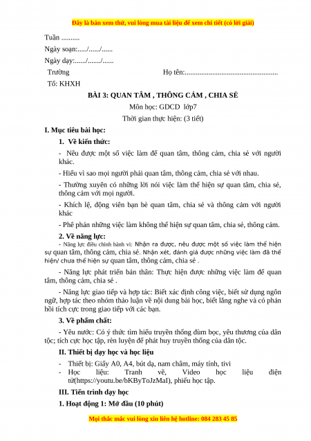 BÀI 3: QUAN TÂM , THÔNG CẢM , CHIA SẺ Môn học: GDCD lớp7