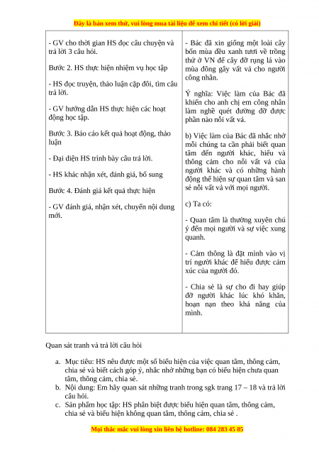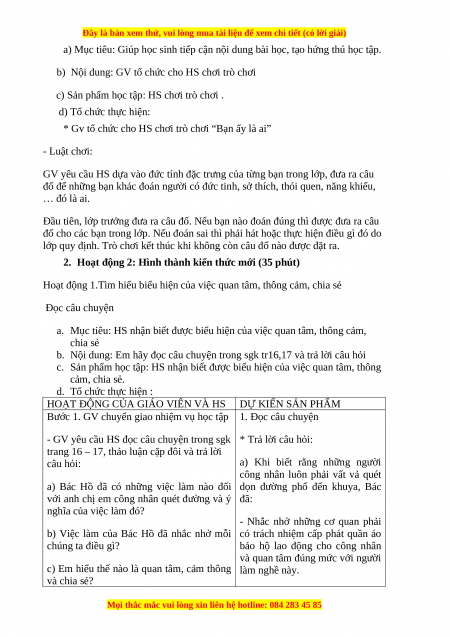c. Sản phẩm học tập: HS nhận biết được biểu hiện của việc quan tâm, thông cảm, chia sẻ. d. Tổ chức thực hiện :