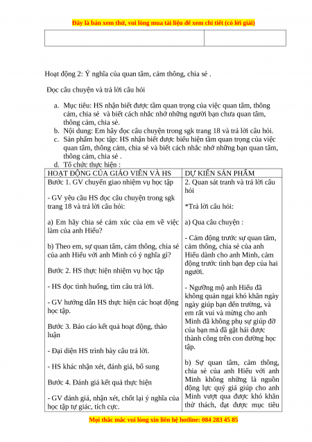 Hoạt động 1.Tìm hiểu biểu hiện của việc quan tâm, thông cảm, chia sẻ Đọc câu chuyện