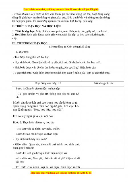 2. Học liệu: Sách giáo khoa, sách giáo viên, sách bài tập, tư liệu báo chí, thông tin, clip.