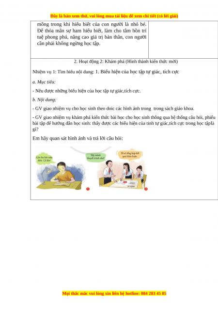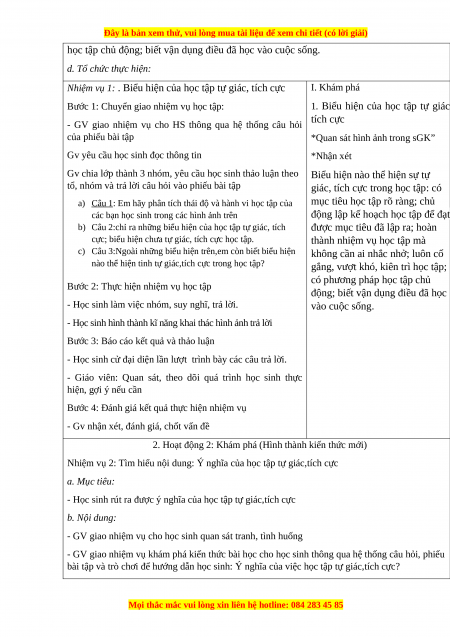 - Nêu được những biểu hiện của học tập tự giác,tích cực. b. Nội dung: