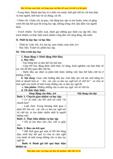 quyết các vấn đề thường gặp về chữ tín phù hợp với lứa tuổi, biết lắng