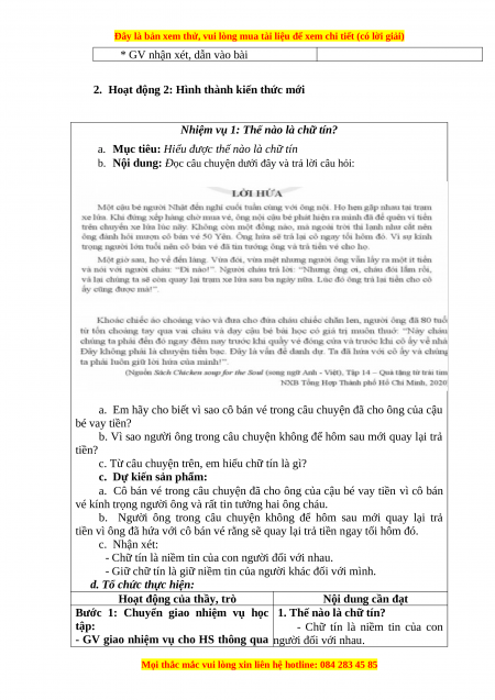 Bước 1: Chuyển giao nhiệm vụ học 1. Thế nào là chữ tín? tập: