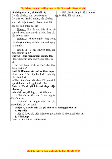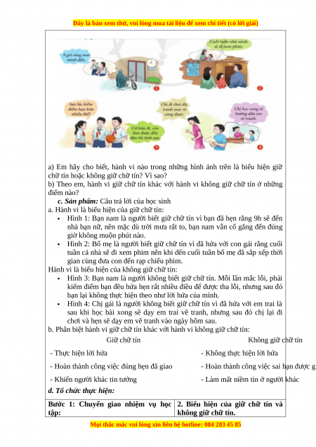 Nhiệm vụ 2. Biểu hiện của giữ chữ tín và không giữ chữ tín. a. Mục tiêu:
