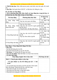 1. Thiết bị dạy học: Máy chiếu power point, màn hình, máy tính, giấy A0, tranh ảnh