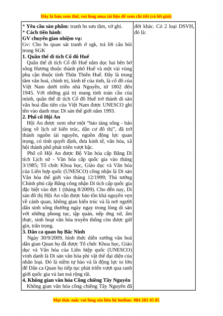 * Yêu cầu sản phẩm: nhận biết được các loại di sản văn hóa.