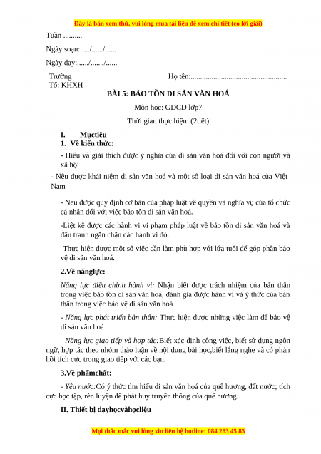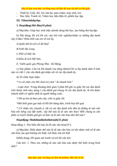 a) Mụctiêu:Giúp học sinh hiểu rõ những quy định của pháp luật về di sản văn hóa; b) Nội dung: