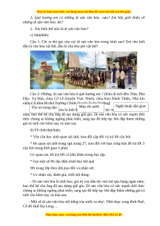 Câu 2: Những di sản văn hóa ở quê hương em ? (Khu di tích đền Trần, Phủ
