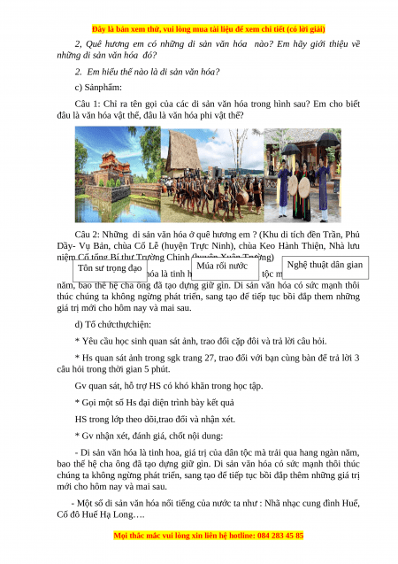 Câu 3: Di sản văn hóa là tinh hoa, giá trị của dân tộc mà trải qua hang ngàn