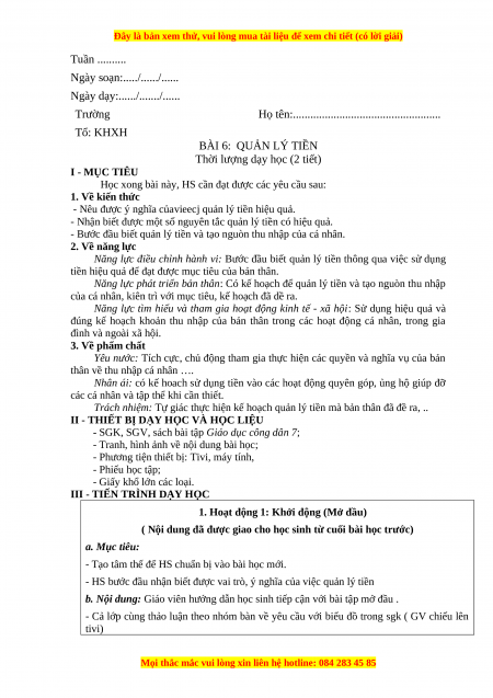 Giáo án GDCD 7 Bài 6 (Cánh diều): Quản lý tiền