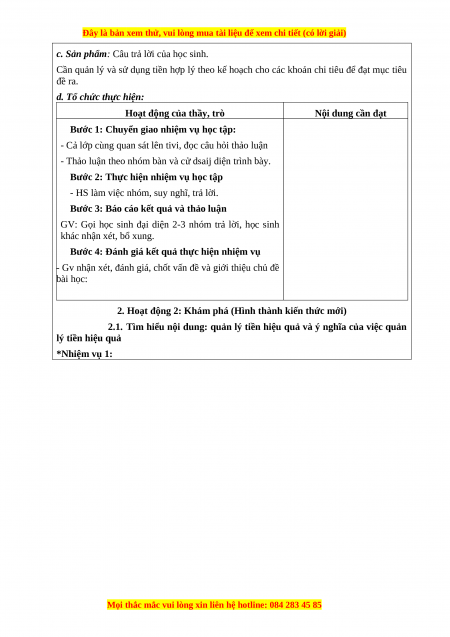- HS được phát triển các năng lực: tự học; hợp tác. b. Nội dung: