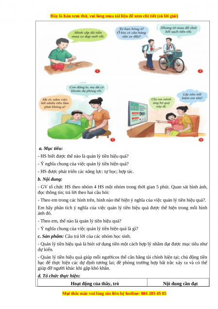 - Nêu được ý nghĩa củavieecj quản lý tiền hiệu quả.