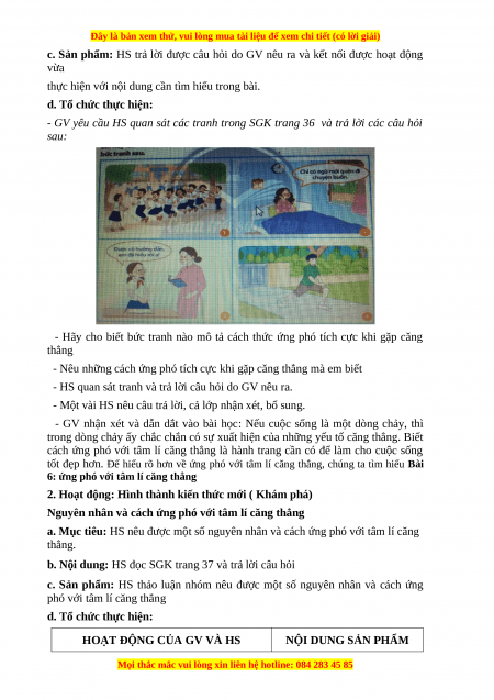 BÀI 6: ỨNG PHÓ VỚI TÂM LÍ CĂNG THẲNG (3 TIẾT) I. MỤC TIÊU: