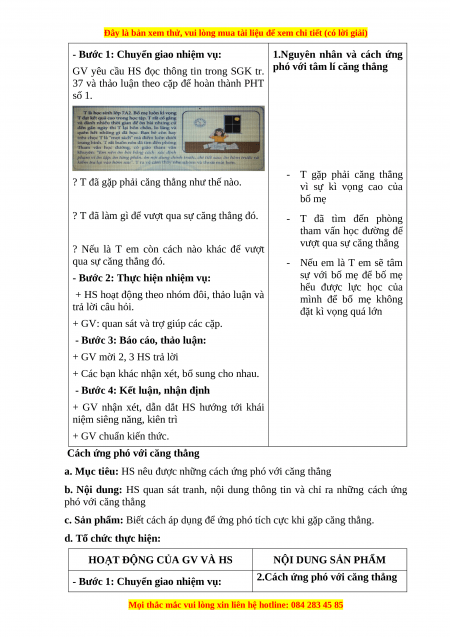 - Thực hành được một số cách ứng phó tích cực với tâm lí căng thẳng 2. Năng lực