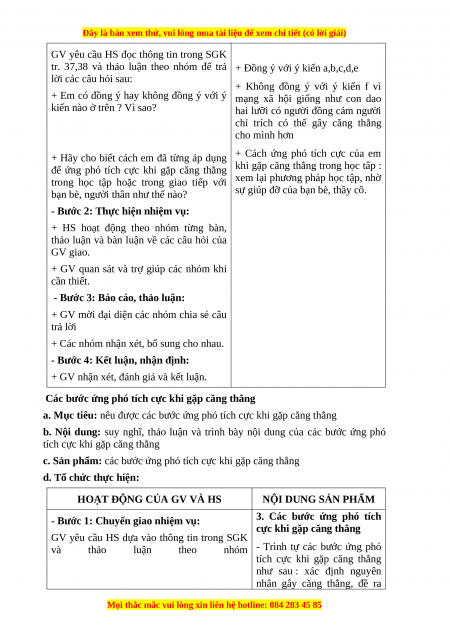 b. Nội dung: suy nghĩ, thảo luận và trình bày nội dung của các bước ứng phó