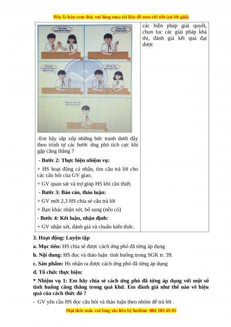 a. Mục tiêu: nêu được các bước ứng phó tích cực khi gặp căng thẳng