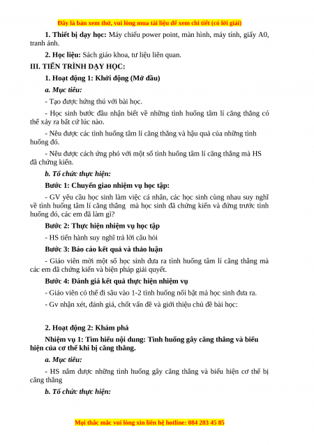 - Học sinh bước đầu nhận biết về những tình huống tâm lí căng thẳng có