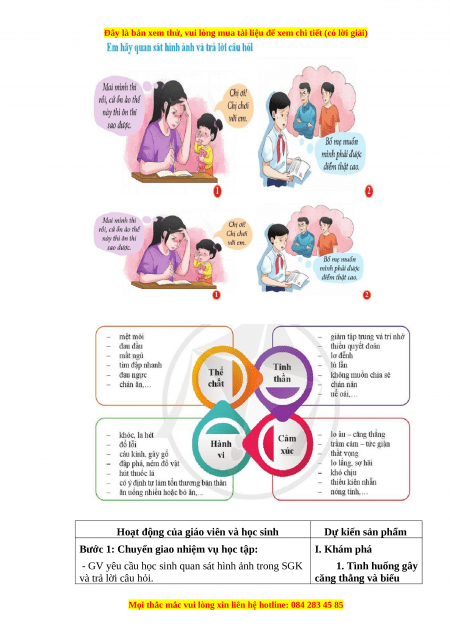 Nhiệm vụ 1: Tìm hiểu nội dung: Tình huống gây căng thẳng và biểu