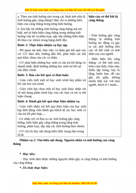 - Nêu được các tình huống thường gây căng thẳng. Nhận biết được biểu hiện của