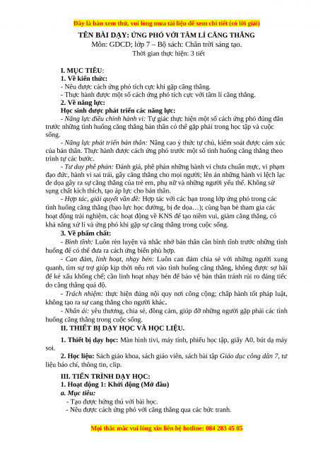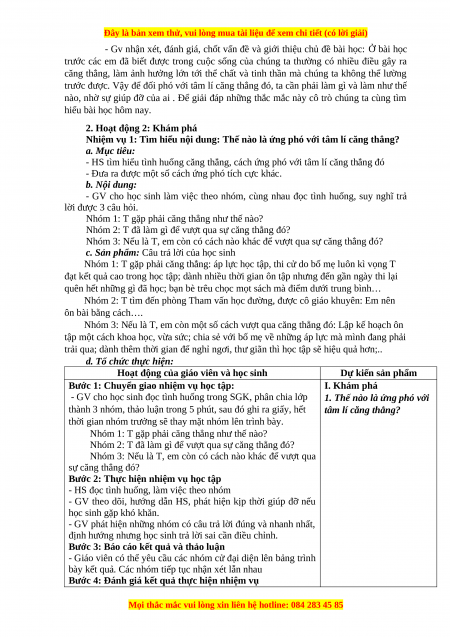 - Thực hành được một số cách ứng phó tích cực với tâm lí căng thẳng. 2. Về năng lực:
