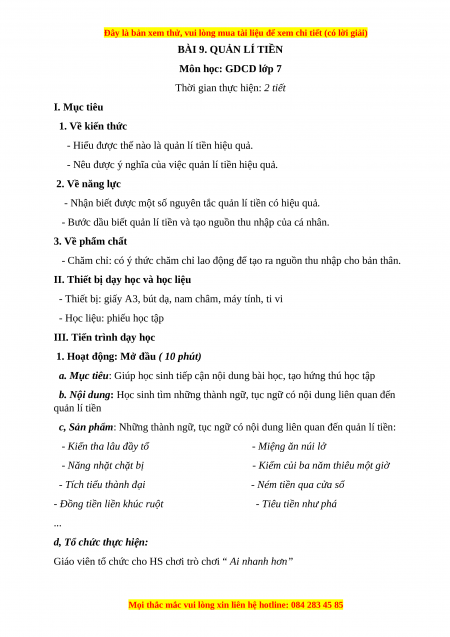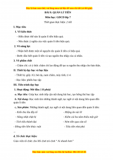 Giáo án GDCD 7 Bài 9 (Chân trời sáng tạo): Quản lí tiền