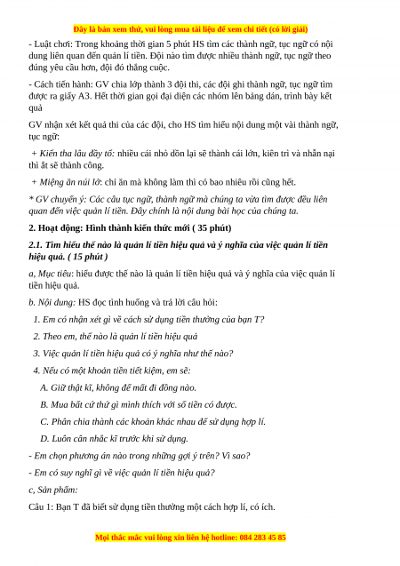 - HS đề xuất hành động cụ thể để quản lí tiền một cách hiệu quả.